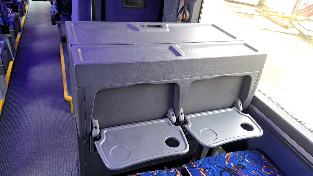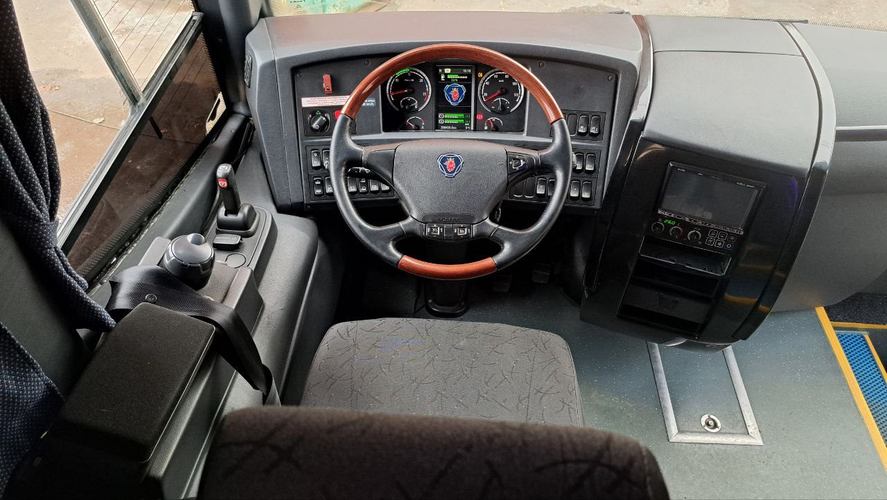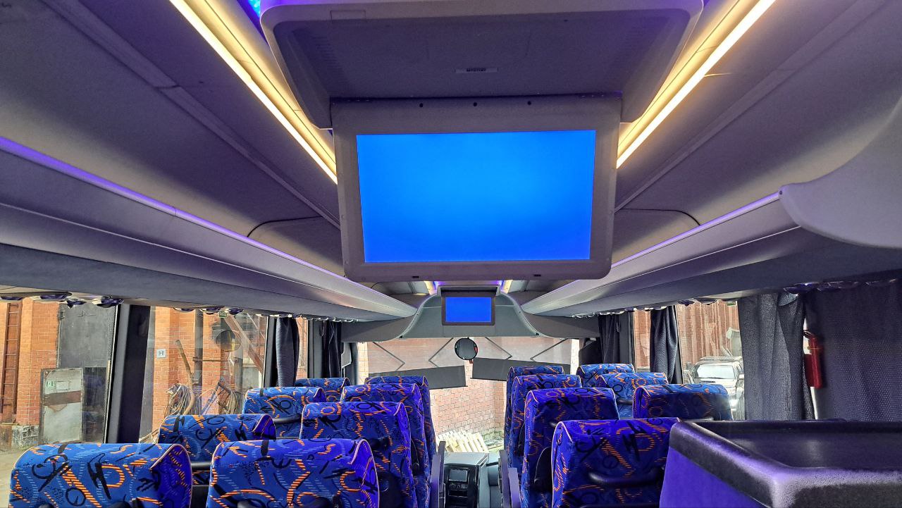 В базовую комплектацию автобуса входят: климат-контроль, ABS, система курсовой устойчивости, круиз-контроль, технология помощи при подъемах и спусках, автономный отопитель кабины, подрессоренное водительское кресло, информационно-развлекательный комплекс с парой широкоформатных дисплеев, аудиосистема с динамиками в пассажирском салоне и многое другое оборудование.