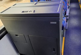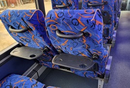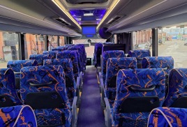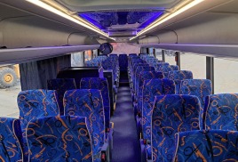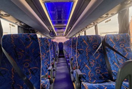 Внутри у него организовано 45-47 посадочных мест, оснащенных мягкими пассажирскими креслами с подголовниками и регулируемыми по углу наклона спинками, а также имеется багажный отсек объемом 9 кубических метров.